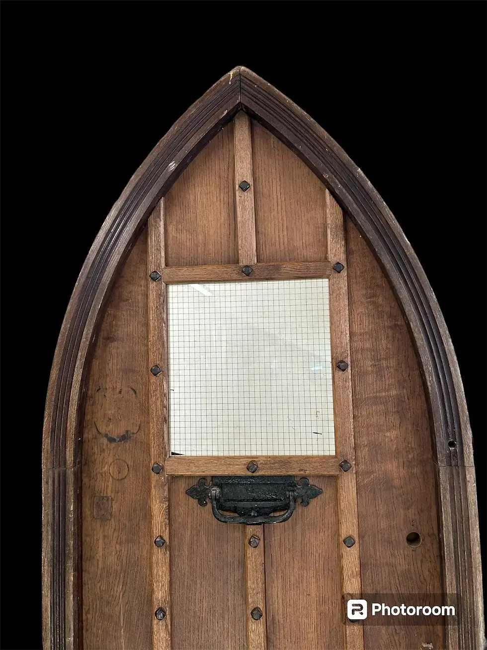 SOLID OAK DOUBLE ARCHED DOORS FRAME FRONT RECLAIMED X LARGE LEADED IRON PERIOD