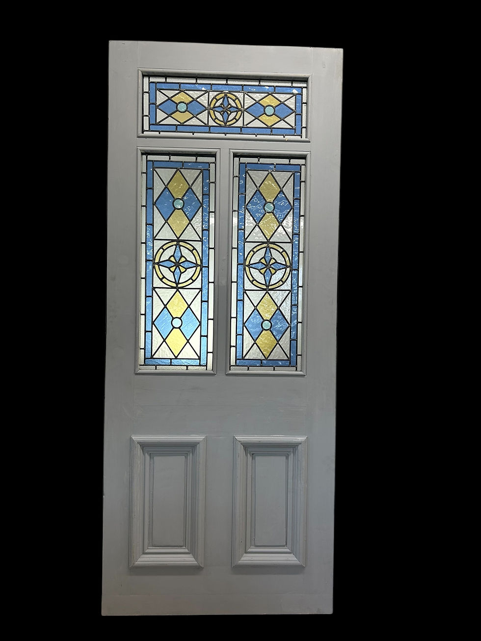 VICTORIAN STAINED GLASS FRONT DOOR OLD ANTIQUE PERIOD RECLAIMED LEADED WOOD